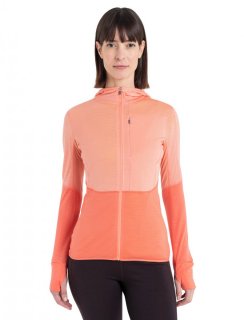 Wmns Merino 200 Realfleece™ Descender LS Zip Hoodie, Glow/Tang/Cb