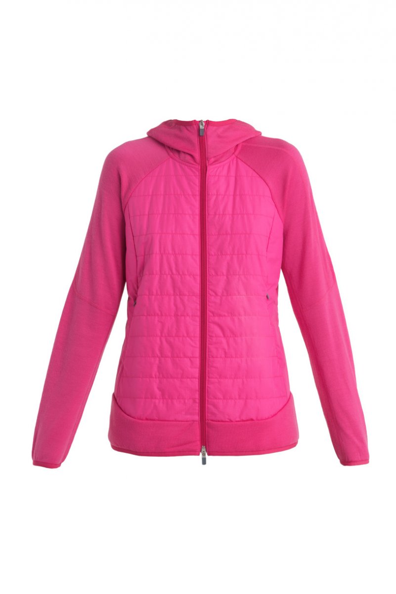 Wmns Merino Quantum Hybrid LS Zip Hoodie, Electron Pink/Tempo