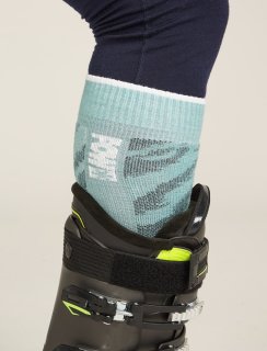 Ski+ Medium Over the Calf Protect Our Winters jsou odolné, elastické a vysoce prodyšné ponožky určené na lyžování na sjezdovce i ve volném terénu. Konstrukce s plným polstrováním se může pochlubit materiálem ze směsi merino vlny, nylonu a elastanu. Navíc je anatomicky tvarovaná a zajišťuje hlavní podporu v oblasti kotníku, achilovky a nártu. Prodyšná zóna zlepšuje odvod potu a vlhkosti. Bezešvá špička zabraňuje shrnování a eliminuje vznik puchýřů. Tyto ponožky, které jsou součástí kolekce vytvořené v rámci spolupráce značek Icebreaker a organizace Protect Our Winters, dále zaujmou svým celoplošným potiskem, který zobrazuje krásu a křehkost světových ledovců, které čelí změně klimatu. Značka Icebreaker se nechává inspirovat přírodou a využívá kvality přírodních vláken jako alternativu k oděvům vyráběným z petrochemických syntetických materiálů. Merino vlna je materiál, který se každý rok přirozeně obnovuje, nezachytává pachy, udržuje vás v chladu, když je horko, a v teple, když je zima. Nechává vaši pokožku dýchat a zaručuje pohodlí po celý den.